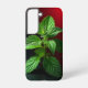 Con esta foto macro de una planta de menta, que es una imagen de lo más fresca y elegante de la naturaleza. Captadas con un detalle impresionante, las hojas verdes crujientes aparecen dramáticamente contra un fondo negro moreno con un gradiente rojo llamativo. Ideal para la decoración de la cocina, los regalos con temática de hierbas, los amantes de la botánica o cualquiera que aprecie la belleza cruda de la naturaleza. Este diseño es perfecto para impresiones, tazas, bolsas de té o accesorios ecológicos.