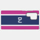Now your phone can look really stylish with this tough case decorated with a bold navy stripe on a pink background and your custom initials.
