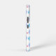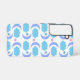 Do you like celestial theme phone cases? This phone case has a pattern of purple moons, blue clouds and pink stars.