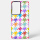Diseño de patrones de superficie de estilo Houndstoth en una brillante mezcla de colores sobre un fondo blanco.