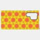 Un patrón divertido de formas geométricas florales de estallido naranja sobre un fondo amarillo brillante.