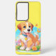 Un estuche de teléfono con una foto de un cachorro adorable sentado entre las flores. Se ve muy feliz de estar rodeado de flores y mariposas. El regalo perfecto para dar a los que aman los perros perritos. Contiene contenido generativo.