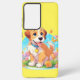 Un estuche de teléfono con una foto de un cachorro adorable sentado entre las flores. Se ve muy feliz de estar rodeado de flores y mariposas. El regalo perfecto para dar a los que aman los perros perritos. Contiene contenido generativo.