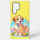 Un estuche de teléfono con una foto de un cachorro adorable sentado entre las flores. Se ve muy feliz de estar rodeado de flores y mariposas. El regalo perfecto para dar a los que aman los perros perritos. Contiene contenido generativo.