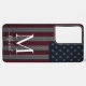 Bandera Patriótica Americana sobre el funda de diseño de malla metálica abstracta para proteger su Galaxia Samsung. Este diseño presenta la bandera de los Estados Unidos de América (EE.UU.) sobre fondo de malla metálica con la bandera descolorida para mostrar la textura del metalizado. Puede personalizar este diseño con su nombre inicial.