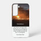 Personalized phone case. A template design; whereby, its picture, verse, and name can be customized.