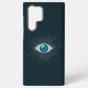 Una mirada malévola que se da a los desconocidos. Un globo ocular azul bonito, pestañas estilizadas plateadas con formas celestiales de sol, luna y estrella, triángulo y círculo sobre un fondo azul verde azulado. Un talismán para los supersticiosos y creyentes de la magia apotrófica. El motivo del mal ojo, una maldición sobrenatural de la leyenda. Una mirada desafortunada conocida a nivel mundial en muchas culturas y por muchos nombres. Nazar turco, indio y paquistaní, Mati griego, en España y Mal de Ojo. Ojos místicos diseñados específicamente para hombres y mujeres que quieren un encanto de buena suerte o un amuleto para evitar una superstición malvada. Un funda de Samsung Galaxy, moderno y de moda.
