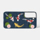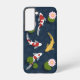 Hermoso ilustracion vectorial minimalista de coloridos peces japoneses koi nadando entre las nenúfares en un estanque. Koi es una carpa ornamental de colores vivos domesticada en Japón.