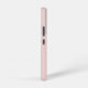 Este estuche de teléfono presenta un nombre rosado, un conjunto de monogramas o iniciales en un tipo de letra con estilo guionado y florido sobre un fondo rosa rubor.