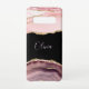 Esta impresionante funda de teléfono brillante llamará la atención de todos. Tiene tonos de rosa y malva de ágata falsa con vetas de purpurina dorada en los bordes de las capas. Personalízala con tu nombre en escritura rosa pálido en el centro sobre un fondo negro.
