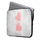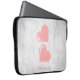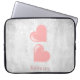 Proteja su portátil con una funda para portátiles personalizada de corazones rosados. El diseño de la manga portátil presenta un par de corazones apoyados en una vina de hojas blancas contra un fondo gris con un lugar para personalizar con tu nombre. También hay artículos adicionales disponibles con este diseño. Póngase en contacto conmigo directamente para obtener ayuda sobre la personalización.