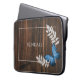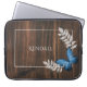 Proteja su portátil con una funda de portátil personalizada Rustic Blue Butterfly. El diseño de la manga portátil presenta una mariposa vibrante que descansa en un delicado follaje con un espacio para añadir tu nombre a un fondo rústico de madera con un lugar para personalizar con tu nombre.