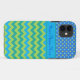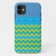 Un Funda de moda y personalizable-funda 'Apenas hay' para proteger tu iPhone 5/5 con un patrón de mezcla 'n'match de los puntos de Polka, unido con un patrón de zigzag de Chevrons verde neón y turquesa en un fondo verde esmeralda. Parte de la gama de "Blue Moons" de Posh & Painterly.