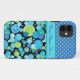 Un Funda de moda y personalizable-funda 'Apenas hay' para proteger tu iPhone 5/5 con un patrón de mezcla de puntos de polka, unido con un peculiar patrón de lunas azules en verde neón, turquesa y verde esmeralda sobre un fondo negro. Parte de la gama de "Blue Moons" de Posh & Painterly.