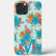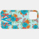 Funda Retro Pioneer Verde azulado Coral Monograma iPhone 13 Pro Max con paleta de color verde azulado, naranja y coral.