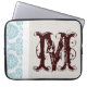 Blue Filigree Damask White Gray Swirly Diseño Papel textura Papel-Textura Monograma Funda portátil inicial de 15" Bolsa personalizada