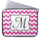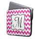 Purpurina rosa moderno Chevron Zig Zag Stripe Fabric Patrón de impresión Monograma Primer Bag Funda portátil de 15" Personalizado