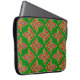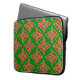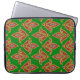Elegante manga portátil de 15", con un patrón "fleur-de-lys" en rojo profundo y dorado sobre un fondo verde oscuro, con un guarnecido negro.