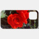 Rosas rojas recién recolectadas del jardín en un hermoso y elegante estuche para iPhone. Elegante y elegante