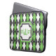 Argyle va retro de 8 bits con este esquema de color verde, gris, blanco y negro que remonta a los juegos de arcade de la vieja escuela. Personalizar el monograma con las iniciales adecuadas para un toque personalizado. Esta manga está disponible en tamaños de 10", 13" y 15" para una amplia variedad de laptops, tablets, lectores electrónicos y netbooks.