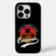 Estuche para iPhone de San Francisco con un diseño retro que cuenta con una puesta de sol y palmeras sobre fondo negro (personalizable bg). Este diseño también tiene a California en un tipo de letra manuscrita con un glifo de cruz para ese elegante estilo retro. Este estuche para iPhone es sólo para ti si eres de San Francisco o puedes conseguirlo como regalo o recuerdo para alguien.