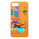 Este Funda retro Personalizado de cócteles Fiesta iPhone 6 no tiene ni un hueso introvertido en su cuerpo. El diseño moderno de mediados de siglo incluye un vibrante dibujo personalizado de una sala de estar y un animado fiesta de cócteles. Hay una pareja atractiva en la pista de baile. La mujer rubia con un vestido turquesa y su alta, oscura y guapa escolta están bailando la cha-. En el suelo hay un récord verde rodeado de discos de vinilo. Contra la pared del fondo, un bonito pelirrojo está sentado sobre un sofá azul. Ella lleva un vestido rosa brillante. Su único accesorio es el vaso martini en su mano. A su lado hay una lámpara de suelo sin la sombra. Hmm... ¿Dónde está la sombra? Está en la cabeza de un hombre mareado con un traje azul que claramente es la vida del fiesta. También sostiene un vaso de martini. Quienquiera que decorara la habitación no tenía miedo del color. Tiene una pared de ladrillo naranja y un suelo naranja. En la pared que hay detrás del sofá, hay un cuadro verde azulado y turquesa de un globo con un marco negro.
