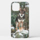 Funda Wolfdog iPhone 12. Hermosa foto de Wolfdog Nox, de pie sobre una roca, Bois de Vincennes, París, Francia. Foto de Tahoe Beetschen.