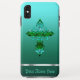Magnífica cruz medieval en tonos de guarnecido metálico verde y plateado con nombre personalizado, sobre fondo de gradiente verde. El color de fuente, el estilo de fuente y el tamaño de fuente son personalizables.