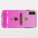 Magnífica cruz medieval en tonos rosados y plateados con nombre personalizado, sobre fondo rosa. El color de fuente, el estilo de fuente y el tamaño de fuente son personalizables.