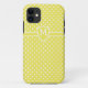 Un elegante Funda Xtreme a personalizar para tu iPhone 5/5s, con un patrón de Punto de Polka amarillo dorado y blanco y una forma de escudo para tu primer o monograma. Parte de la colección "Daffy-down-Dillies", de Posh & Painterly.