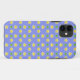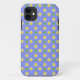Un Funda de moda-funda Mate para proteger tu smartphone iPhone 5/5s, con un patrón de bonito de primroses amarillos y puntos de polka verde sobre un fondo azul violeta; de la colección "Primroses" de Posh & Painterly.