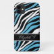 Elegante funda personalizado iPhone 5 personalizado con su nombre, y diseñado con un patrón de impresión de cebra con rayas de cebra azules, blancas y negras.