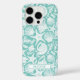 Personaliza esta funda para iPhone 16 pro con el patrón de conchas aqua y tu nombre en una fuente mayúscula moderna y trendy en aqua sobre blanco. ¡Es tan moderna y playera!