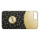 Aquí hay una elegante funda de monograma para smartphone para damas impresa en oro y negro con elementos de diseño simulados en oro impresos digitalmente que añaden un toque de clase a su teléfono celular. Creada para damas o chicas a las que les gusta poner las letras de su nombre en sus cosas.