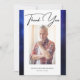 Funeral Gracias Fotografía Simpatía Tarjeta conmemorativa Bereavement presenta un moderno patrón de nebulosa azul alrededor de una foto de tu ser querido con el texto "Gracias" en escritura negra moderna. Al contrario, agregue su mensaje personalizado. Diseñado por Evco Studio www.zazzle.com/store/evcostudio