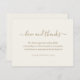Tarjetas de agradecimiento funerarias minimalistas por un servicio conmemorativo que incluye texto dorado en un fondo de color crema de marfil, fuentes de escritura de buen gusto y la opción de agregar una foto de tu ser querido en el reverso. Este diseño clásico, sencillo y amado y gracias a la elegancia es dorado con detalles de letra de guión. Para redimensionar y posicionar su foto, haga clic en el botón "IT PERSONALIZAR".