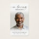 Keep the memory of a loved one close with this custom personalized prayer card featuring one treasured photo, the sentiment IN LOVING MEMORY, name and dates and an editable heartfelt remembrance message. With its simple yet elegant classic black and white design and modern handwritten typography, it makes a meaningful keepsake to share at a funeral, memorial service or Celebration of Life and offers comfort and a lasting tribute for family and friends. Its small and portable size of 3.5x2" (wallet-sized) makes it convenient for loved ones to carry it with them as a reminder of your loved one’s life and spirit. Personalization makes each card unique.