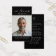 Keep the memory of a loved one close with this custom color personalized prayer card featuring one treasured photo, the sentiment IN LOVING MEMORY, name and dates on the front and an editable heartfelt remembrance message accented with a simple cross on the back. With its simple yet elegant classic black and white design and elegant script typography, it makes a meaningful keepsake to share at a funeral, memorial service or Celebration of Life and offers comfort and a lasting tribute for family and friends. Its small and portable size of 3.5x2" (wallet-sized) makes it convenient for loved ones to carry it with them as a reminder of your loved one’s life and spirit. Personalization makes each card unique.