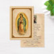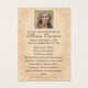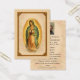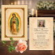 Un diseño tradicional de memorial católico que presenta a Nuestra Señora de Guadalupe enmarcada en un elegante borde dorado antiguo. La parte delantera presenta una imagen serena y reverente de Nuestra Señora, mientras que el reverso incluye una fotografía personalizada y una oración en español por el descanso del alma.