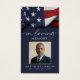 Keep the memory of a loved one close with this personalized patriotic prayer card featuring a cherished photo of them framed in faux metallic gold foil, the sentiment IN LOVING MEMORY, name and dates with an image of an American flag on the front and an editable heartfelt remembrance message on the back in navy blue. With its simple yet elegant classic design and modern script typography, it makes a meaningful keepsake to share at a funeral, memorial service or Celebration of Life and offers comfort and a lasting tribute for family and friends. Its small and portable size of 3.5x2" (wallet-sized) makes it convenient for loved ones to carry it with them as a reminder of your loved one’s life and spirit. Personalization makes each card unique.