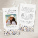 Keep the memory of a loved one close with this personalized prayer card featuring a cherished photo of them framed in faux metallic gold foil, the sentiment IN LOVING MEMORY, name and dates accented with pretty watercolor wildflowers on the front and an editable heartfelt message on the back. With its simple yet elegant classic design and modern script typography, it makes a meaningful keepsake to share at a funeral, memorial service or Celebration of Life and offers comfort and a lasting tribute for family and friends. Its small and portable size of 3.5x2" (wallet-sized) makes it convenient for loved ones to carry it with them as a reminder of your loved one’s life and spirit. Personalization makes each card unique.