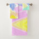 Bold And Stylish Abstract Art Minimalism Turquoise Coral Pink Set Of Towels to add to your collection. A cool present / gift idea for all who love custom design unique items, positive vibes, art, geometry, psychedelic and organic theme etc. Yoga, gym, sport, sports outfit, workout, running, pilates, cycling.