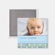 Muestra tu orgullo en tu nuevo chico con este diseño retro de bloques modernos en azul, amarillo y gris sobre un fondo verde azulado. Personalizar con la foto de su bebé y detalles para una invitación de bebé única.