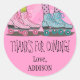 Chicas con lindos y divertidos patines de coloridos patrones y puntos de polka están pasando por ahí en esta brillante y feliz fiesta de cumpleaños con tema de patinaje sobre ruedas a favor del pegatina. Coordina a la perfección con nuestra invitación coincidente: