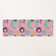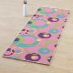 Un fondo rosa brillante está adornado con un patrón divertido de círculos, puntos y anillos en una variedad de colores vibrantes, como azul, verde, púrpura y amarillo.