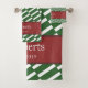 Añada un toque de diseño original a la decoración de su cuarto de baño con este juego de toallas de baño de nombre familiar personalizado. Este moderno juego de toallas tiene un patrón de fondo de rayas verdes y blancas y un área roja para tu apellido familiar y la fecha en que tu familia fue establecida (o texto de tu elección). Este kit de toallas es un gran regalo personalizado para el ama de casa, la ducha de novia, el aniversario o el boda, y es ideal para todas las parejas y familias.