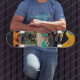 Cálida bruja fresca y boho con patineta de gafas de sol.