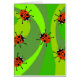 Funky personalizado de ladybugs rojos chisporroteando contra un diseño de fondo retro verde y giratorio.