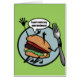 Graciosa tarjeta de saludo vertical de ilustracion cheeseburger. Se pueden personalizar los colores frontal e interior.