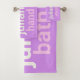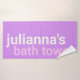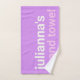 Infórmese a todo el mundo sobre la toalla que tiene con este divertido y sencillo juego de toallas rosadas y violetas personalizado con su nombre.